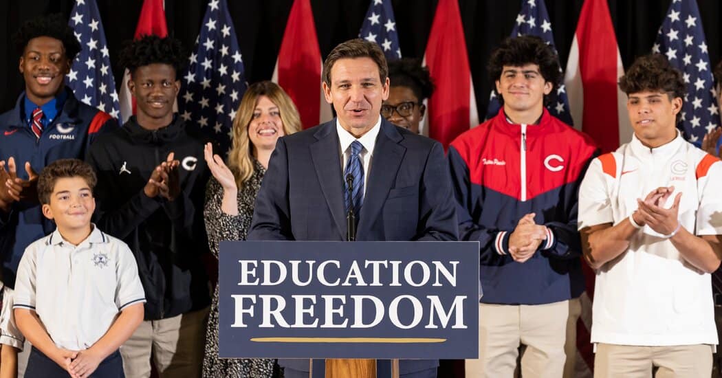 Florida valisi Ron DeSantis, eyaletin Üniversite Kurulu ile ilişkisini yeniden gözden geçirmekle tehdit etti. Kredi… Associated Press aracılığıyla Matias J. Ocner/Miami Herald