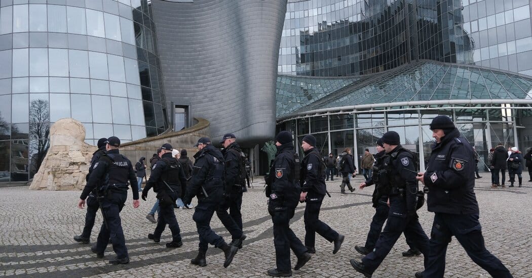 Devrilen muhafazakar partinin destekçileri Çarşamba gecesi TVP evinin önünde polemik bayraklarını sallıyor. Kredi… Czarek Sokolowski/Associated Press