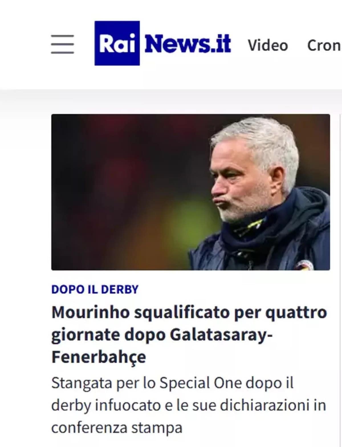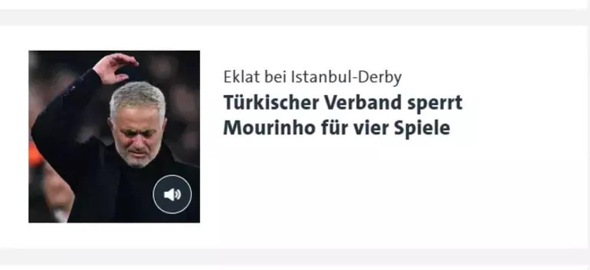 “Jose Mourinho, İstanbul Derbisindeki Skandaliun Akabinde Erkekler Cezasi Aldi. Türkiye futbol futbol federasonuonu Portekizli Tekkik Adama 4 Müt Erkek Cezasi Verdi.”