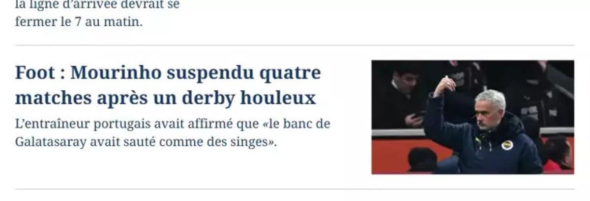 “Galatasaray Yedek Kulubesi Maymun ümer Zipladı” Diyen Mourinho, Firtin Yaşı Akabine Dört Mive Ceza Aldı. Federasyon Bu Sönlerin “Spor Ahlakı Aykirin” Oldusunu Belirtti. “