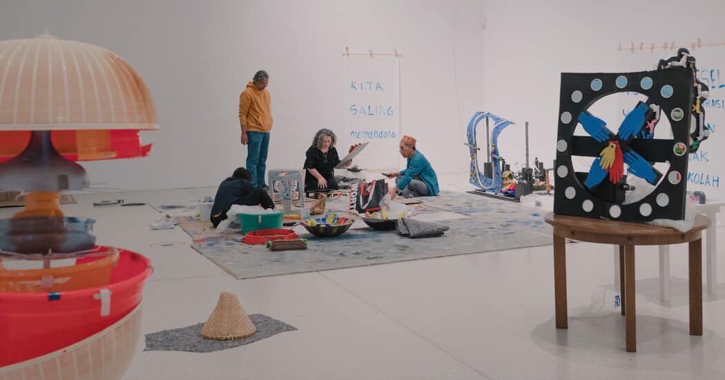 Previous Documenta curators traversed the world to meet artists and solicit their ideas. Ruangrupa’s members, grounded by Covid-19 in Jakarta and Kassel, caught Zoom fatigue instead of jet lag. To build their lumbung — their rice barn — ruangrupa assembled a core of 14 collectives, from countries as far-flung from one another as Cuba, Bangladesh, New Zealand, Mali and Denmark. These collectives were asked to invite other artists, who in turn invited still others, like a virtuous pyramid scheme. Then, depending on their time zone — such are the strictures of the Zoom age — the artists were sorted into nine groups called mini-majelises, from the Arabic term for “council.” Ruangrupa conceived of these mini- majelises as the entire purpose of Documenta. The artists were selected for their backgrounds in collective projects, and in their mini- majelises, they decided how to collaborate with one another or whether to collaborate at all. On occasion, the process got very meta. In Kassel, I met Kiri Dalena, an activist and artist from the Philippines, who was thinking about filming the early-morning rush at a food pantry that people in her home village began during the pandemic. This was collective practice taking collective practice as its subject.